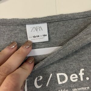 ZARA youth, size 13-14 grey long sleeveve sweater, banded cuffs and hem, graphic