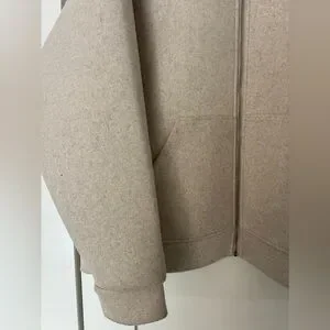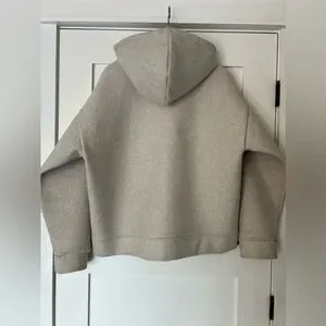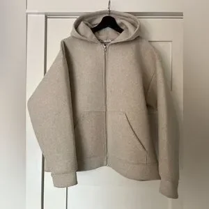Zara zip bomber jacket/hoodie with shaped inner shell, hardly used. Cream colour, size US large. 100% polyester but very soft and warm.