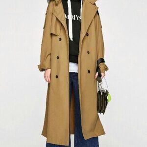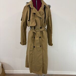ZARA Cotton Tan trench coat with removable Hood sz M/L