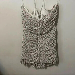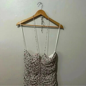 ZARA METALLIC THREAD DRAPED PRINT DRESS M