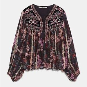 ZARA VELVET EMBROIDERED TIE UP BLOUSE