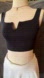 Chic black ribbed crop top with a unique neckline. Perfect for layering or wearing alone.