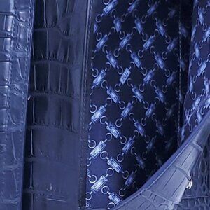 • Cornflower blue matte-finished genuine crocodile skin leather with silk lining detail.