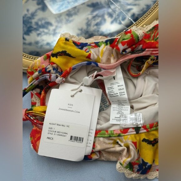 🆕 ZIMMERMANN KIDS 🧿 NWT Alight Trim Frill 1PC, Red Floral - Sz 1Y