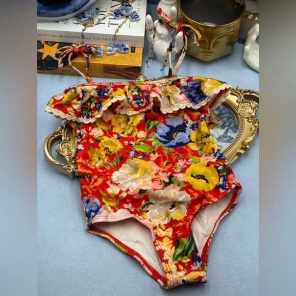 🆕 ZIMMERMANN KIDS 🧿 NWT Alight Trim Frill 1PC, Red Floral - Sz 4Y