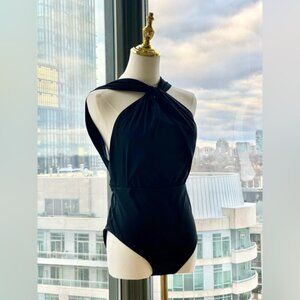 🆕 ZIMMERMANN 🧿 NWOT Ottie High-Neck Draped 1PC Swimsuit, Black - Sz 4 US 10/12