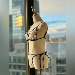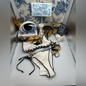 🆕 ZIMMERMANN 🧿 NWT Halliday Knit Scoop Bikini - Ivory/Black - Sz 1 - US 4 / 6