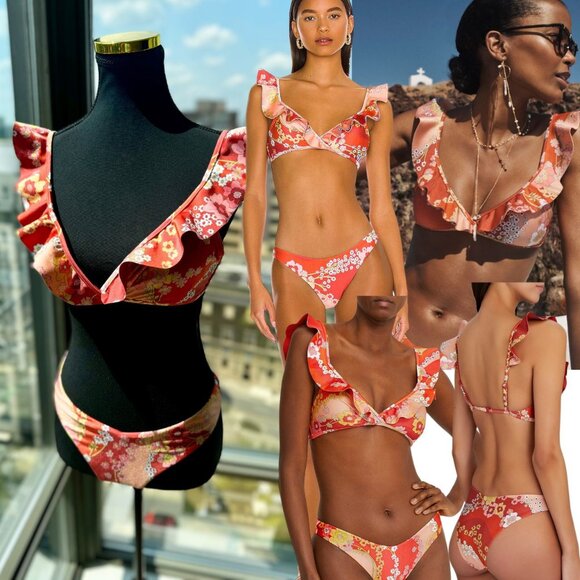 🆕 ZIMMERMANN 🧿 NWT Lola Waterfall Frill Bikini Raspberry Floral- Sz3 - US8 -10