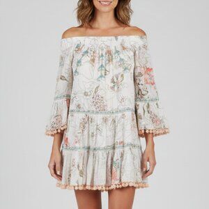 Z&L Floral Beaded Pom Pom Dress Size Small b64