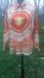 Stylish shirt with intricate patterns. Features red and cream colors. Perfect for a bold look.