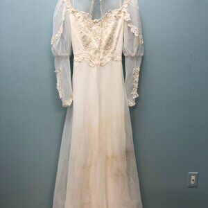 Damaged vintage bridal gown from our storage that got water damage