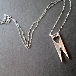 ZOPPINI Stainless Steel Pendant Necklace Heart Cutout Clothespin