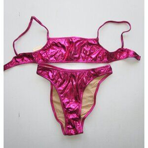 ZULIANA Hot Pink High Cut Leg Metallic Bikini - Sz L - NEW