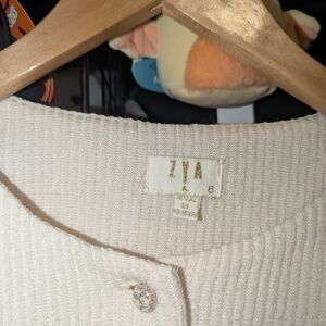 ZYA Cream Ribbed Cropped Button Cardigan