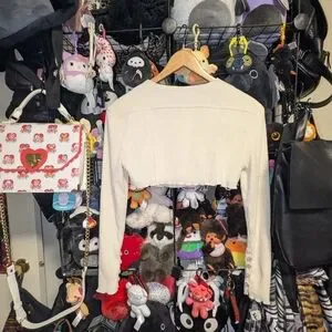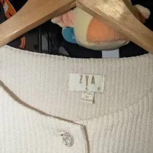 ZYA Cream Ribbed Cropped Button Cardigan