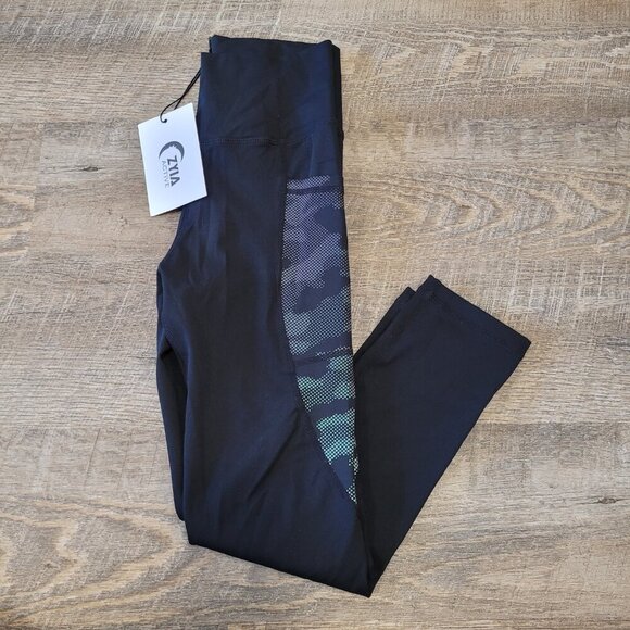 ZYIA | Black Camo Reflective Pocket Brilliant Hi-Rise Capri Legging | Sz. 2