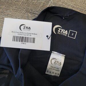 ZYIA | Black Camo Reflective Pocket Brilliant Hi-Rise Capri Legging | Sz. 2