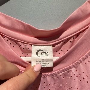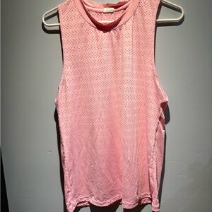 Blush pink muscle tee with perforated texture. Soft, breathable fabric. Perfect for gym or casual outings.