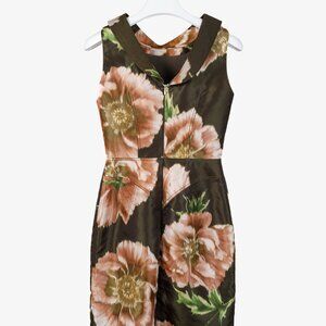 Zac Posen Floral Print Structured Neckline Dress