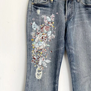 Zac Posen X 7 For All MAnkind Embroidered Low Waist Flared Jeans 31.
