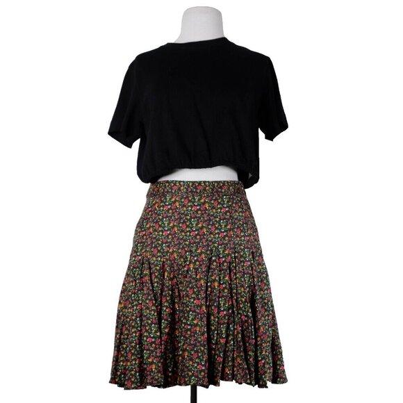 Zac Posen Z Spoke Women's US2 Black Floral Skirt Pleated A-Line Silk Blend Mini