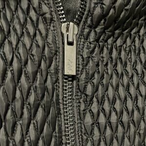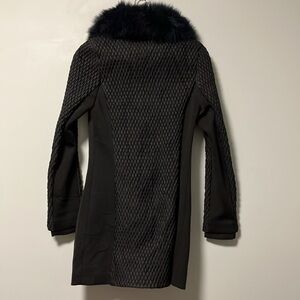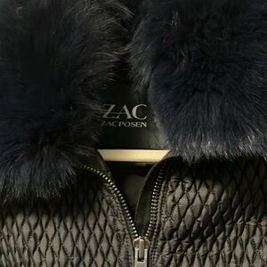 Zac Posen black quilted jacket with real dyed blue fox fur