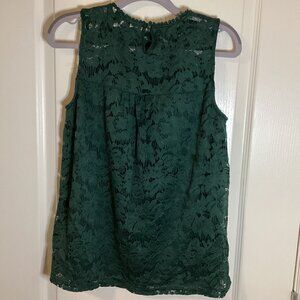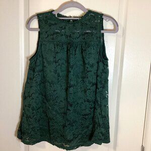 Zac & Racheal Women's Sleeveless Green Lace Top Size S Loose Fit Lined Festive