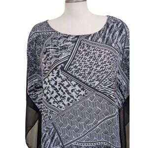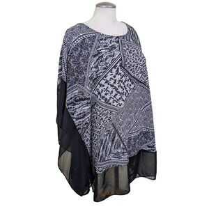 Zac Rachel Poncho Top Womens Plus 3X Semi Sheer Boho Artsy Black White Witchy