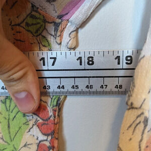 It features a flattering smocked neck for a comfortable fit, delicate 3/4 flutter sleeves that add a touch of femininity, and a beautiful white base with floral print on a breezy fabric (size M).