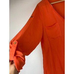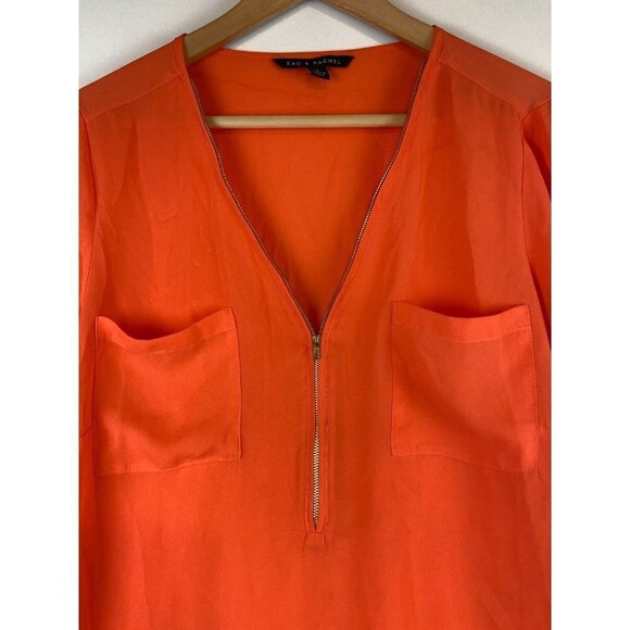 Zac & Rachel Women's Orange Half Zipper V-Neck Roll Tab Sleeve Tunic Top…