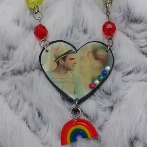Purchased on Etsy a few years back great for any Zachary Quinto fan. Necklace has a heart with an image of Zachary and a rainbow. Unique one of a kind piece.