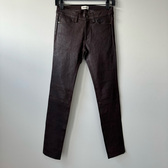 Zadig & Voltaire 100% Leather Pants Phlame Brown Skinny Designer Jeans 0 NWOT