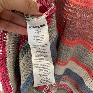 Zadig & Voltaire long cardigan, long raglan sleeves, multicoloured crochet, oversized look with open front.