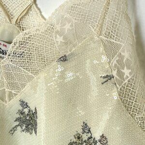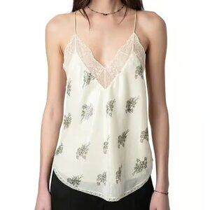 Zadig Voltaire Christy Floral Sequined Camisole Cream Lace Lingerie Tank Top