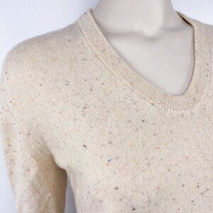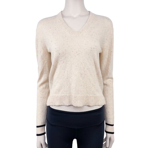 Elegant cream V-neck sweater. Soft knit fabric. Perfect for layering.