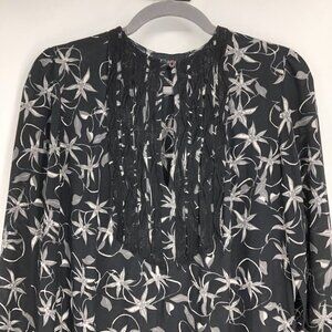Zadig & Voltaire Dark Floral Remus Print Drop-Waist Silk Long Sleeve Dress S