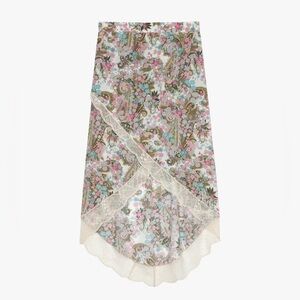 This stylish Jeudie skirt features the season's must-have floral print. Fitted at the waist, it features an asymmetrical drape with lace strips for a bohemian rock look.