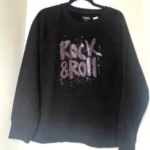 Zadig Voltaire Upper Rock & Roll Beaded Sweatshirt Large Black Strass Cotton