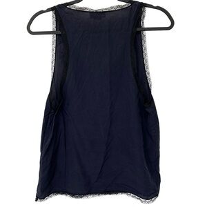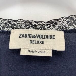 Zadig and Voltaire Camisole Top Womens XS/S Navy Blue Lace Trim Silk V-Neck