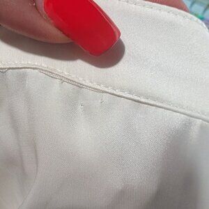 New with tags. Small fabric run on shoulder. Pin hole at back of neck from security tag.