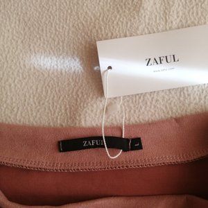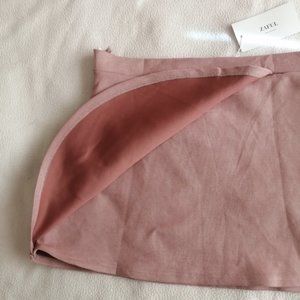 Zaful faux suede blush pink wrap front flap mini skirt. Side zipper.