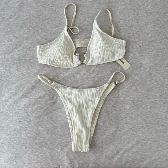 Zaful White Ribbed Bikini Set