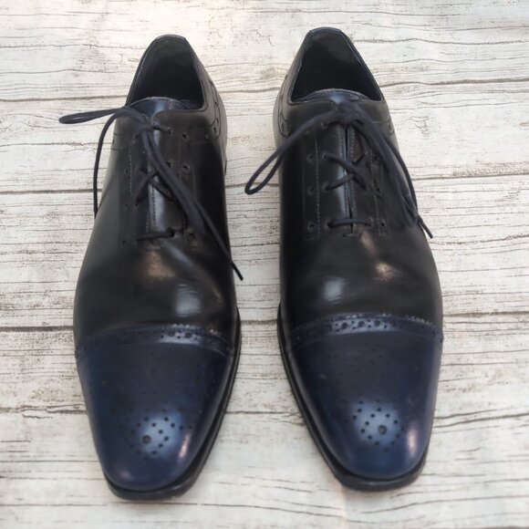 Zampiere Black and Blue Cap Toe Mens Oxford Dress Shoes Size 10.5