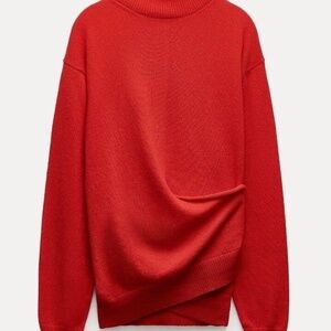 New with tags, Zara 100% Cashmere Knotted Sweater. High collar with long sleeves with multi-positional knot. Rib trim. Size M/L, approx measurements laid flat: pit to pit is 23in, length is 26 in.