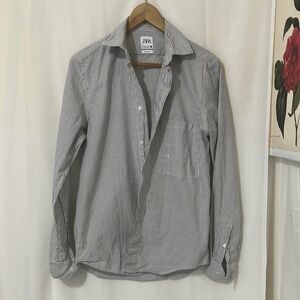 Zara 100% Cotton Blue Striped Long Sleeve Shirt