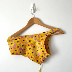 Zara 2 Piece SET One Shoulder Crop Top Biker Shorts Sunflower Yellow Size Medium