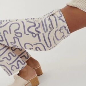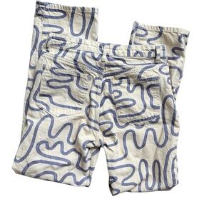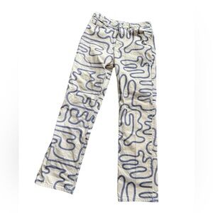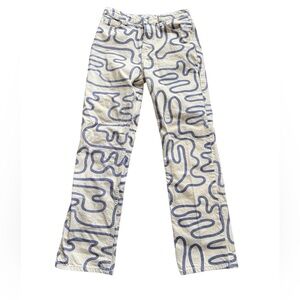 Zara Abstract doodle, cotton jean, button closure, high waist, straight leg, sz8