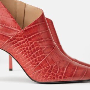 Zara croc effect high heel booties. Asymmetrical upper with ankle cutout. Pointed toe. Inner side zip closure.
