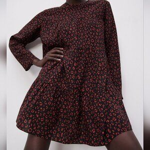 Zara | Animal print mini dress in Red & Black leopard
