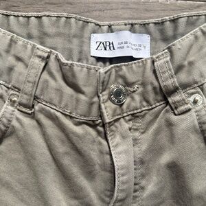 ▫️ Zara Army Green Cargo Pants with Wide Leg Fit